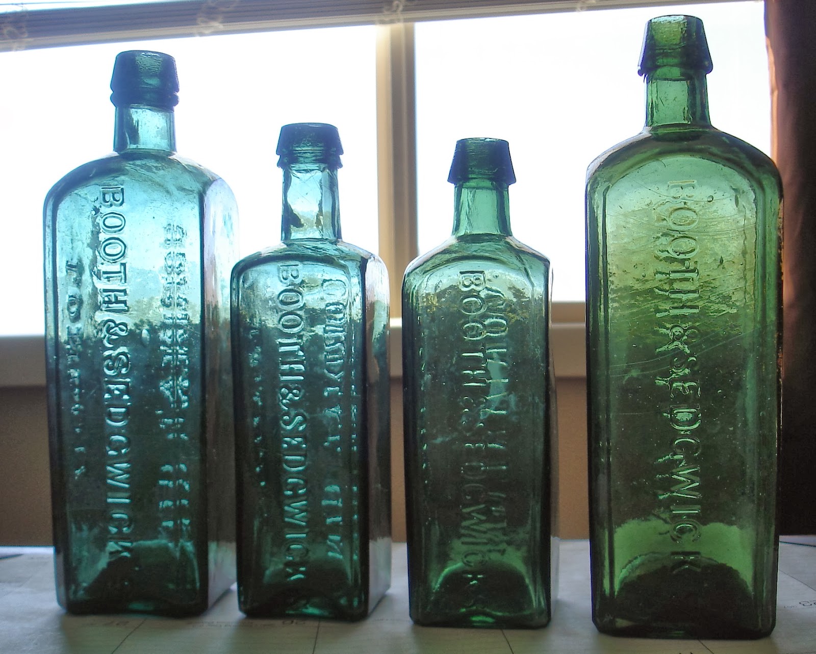 My collecting goals are constantly in flux it seems. I have really grown to appreciate these Booth and Sedgwick bottles. All of the early embossed squares are appealing to me. It's that darn gold rush thing.
